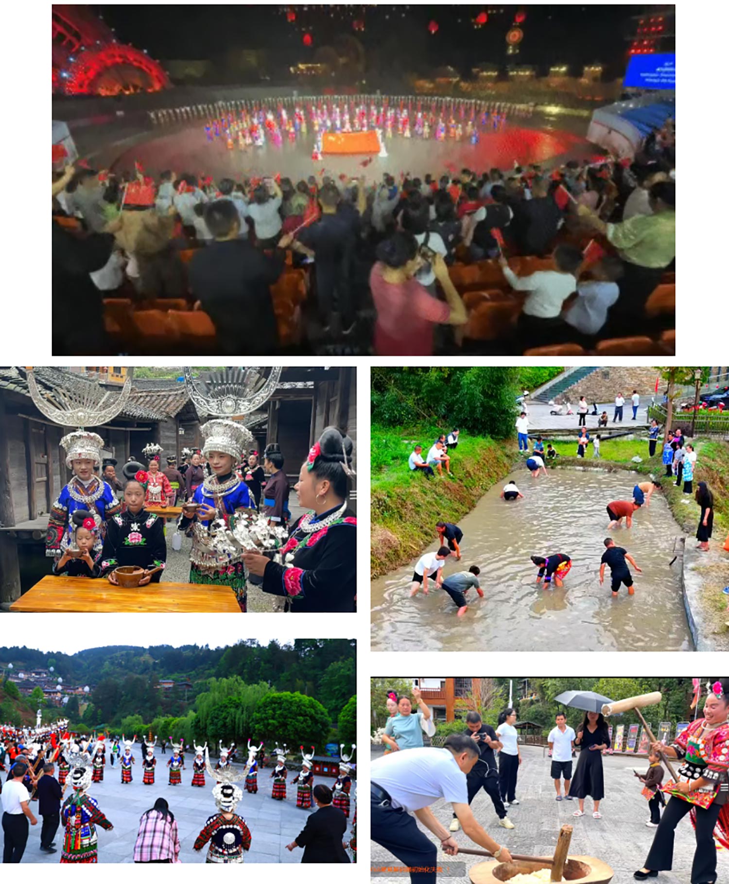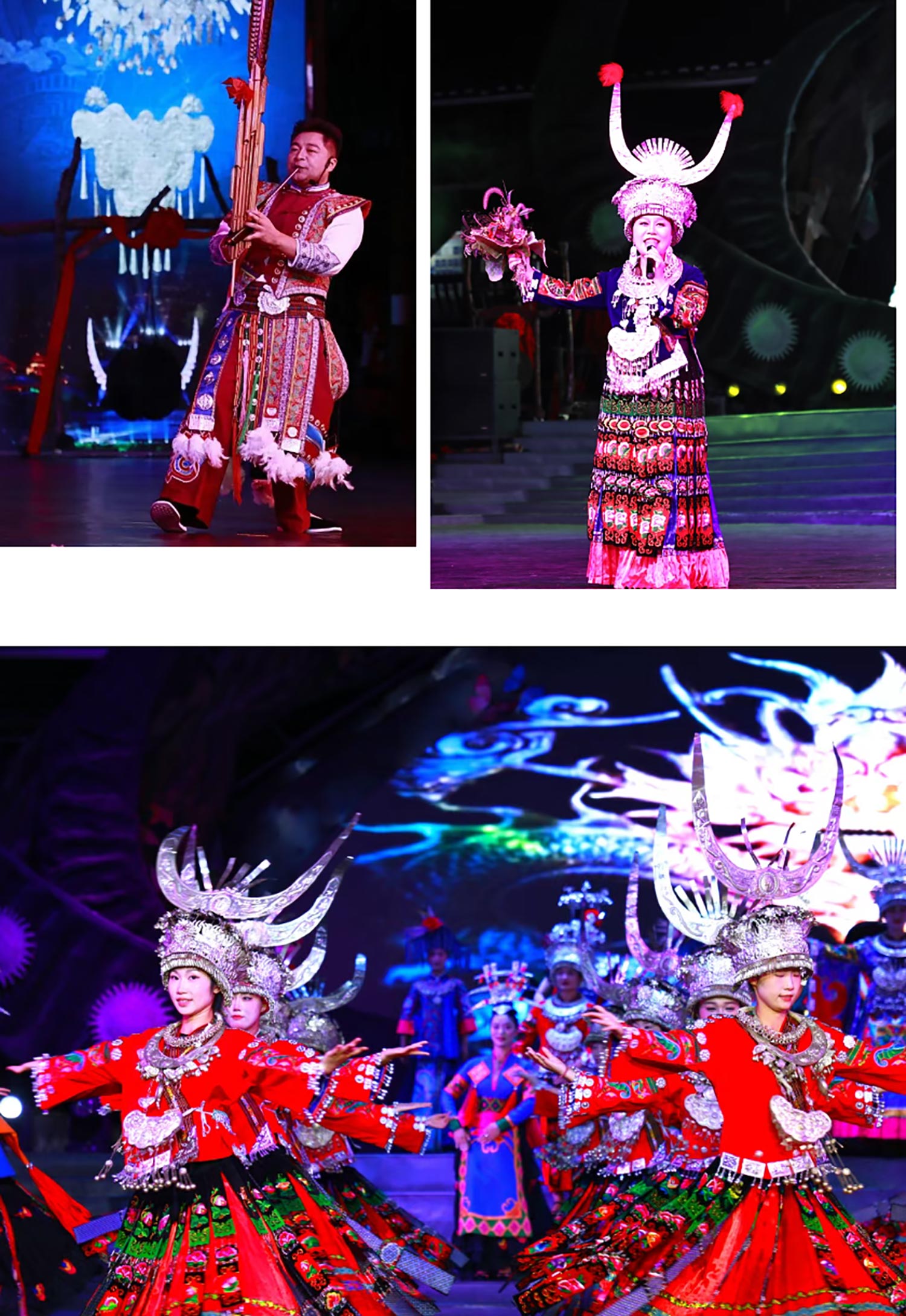 西江千户苗寨的美丽西江表演场《苗韵蝶声·美丽西江》燃动演绎,现场氛围更是热闹非凡。