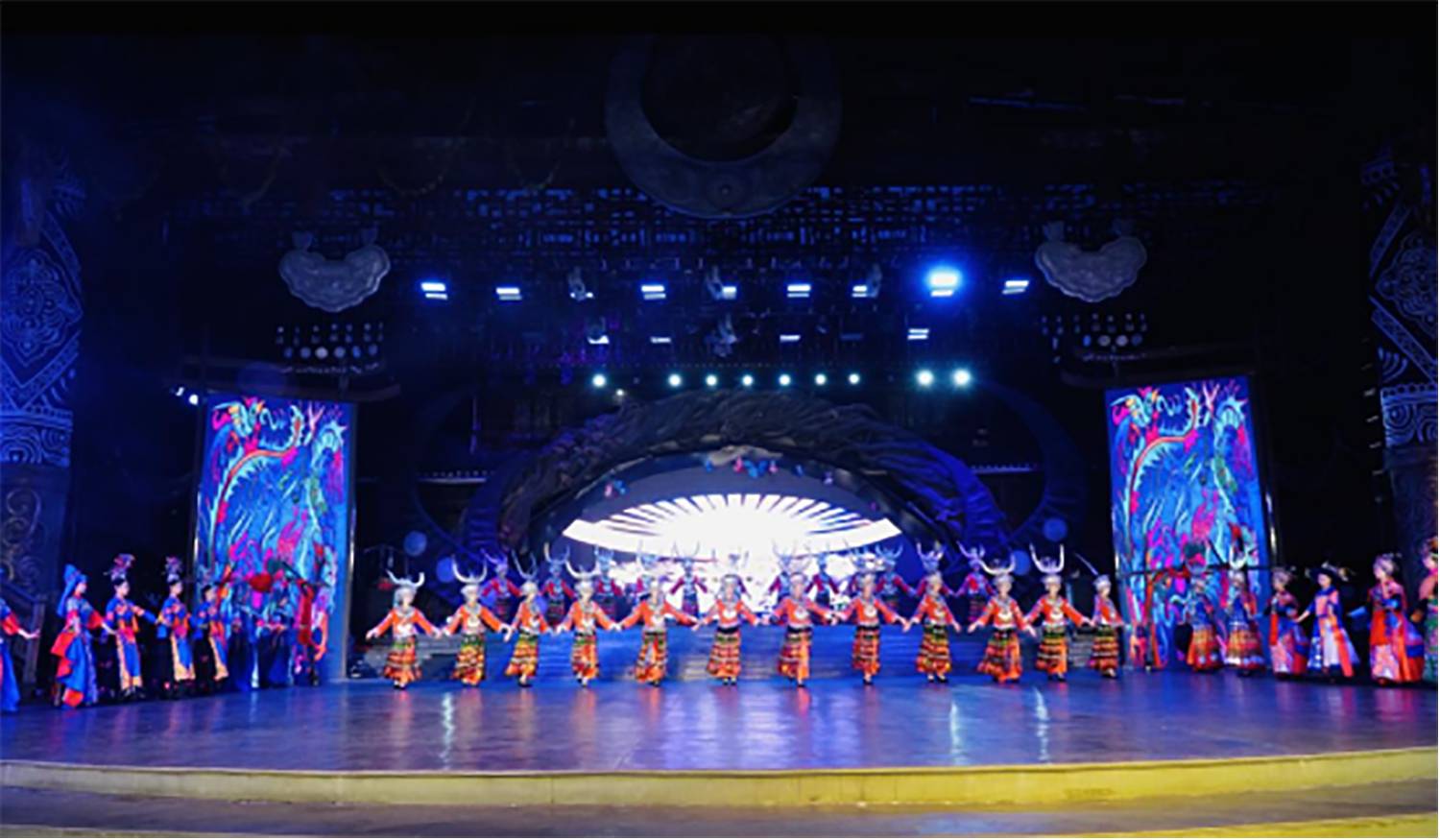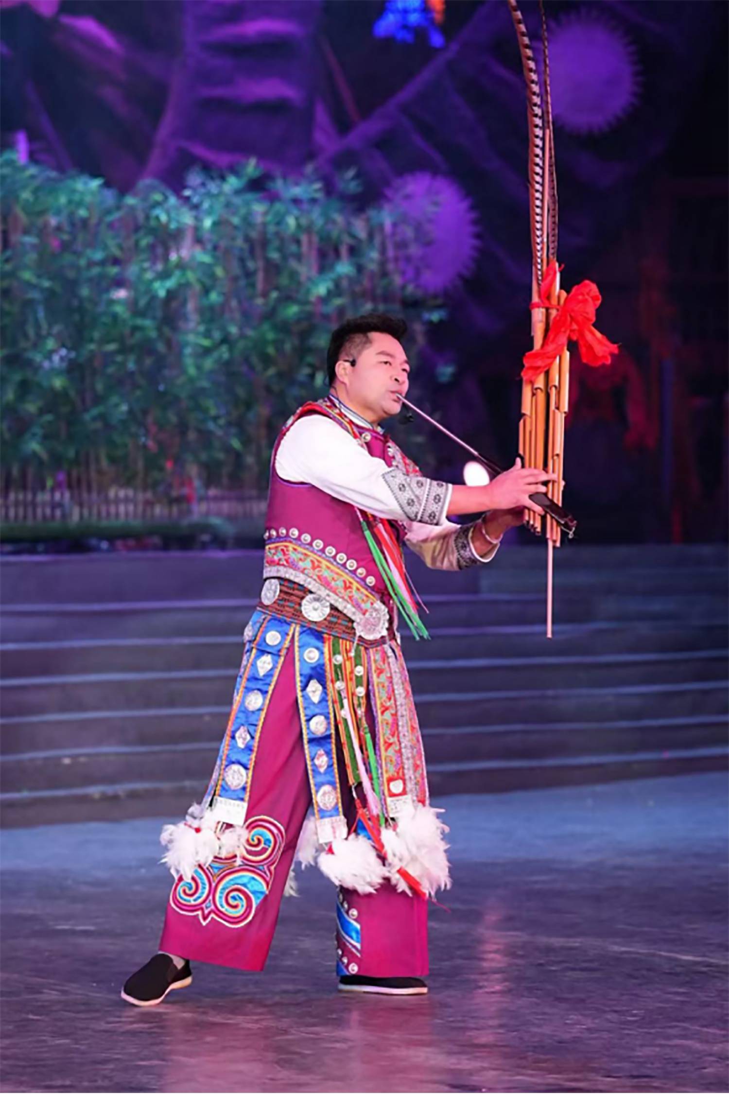 当晚的演出依旧星光熠熠,在悠扬的芦笙声中,一级演员、苗族歌王蝶当久身着华丽苗装登场,一曲《对歌对到日落坡》刚起调便引发全场欢呼,高亢的嗓音与千户苗寨的夜空完美共鸣。而幕后,几位核心表演者的坚守更让这场盛宴有了深层厚度。