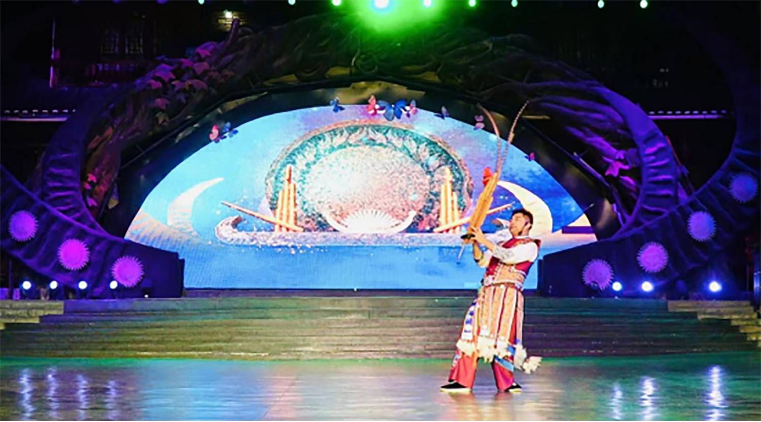 贵州民族大学音乐舞蹈学院教师、苗族芦笙传承人杨昌杰则用指尖的温度延续着文化生命力。连续四场演出,他手中的芦笙始终音色清亮,将苗族山林生活的意境娓娓道来。“每一把芦笙都有自己的特性,这几天每次演奏时我都会提前调试。看到观众眼中的专注,对我而言,演出不只是展示技艺,更是一次文化交流,我知道这声音真正走进他们心里了。”杨昌杰坦言,从大学讲台到苗寨舞台,不变的是对传承的执着,“看到孩子们跟着芦笙音摇晃身体,就像看到文化的种子在发芽,这比任何掌声都珍贵”。