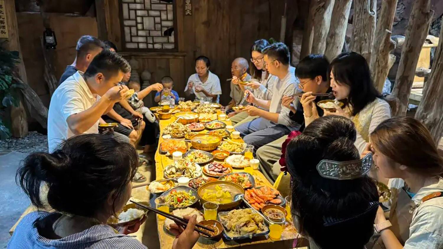 劳作之后,坐下来享受丰盛的苗年宴: