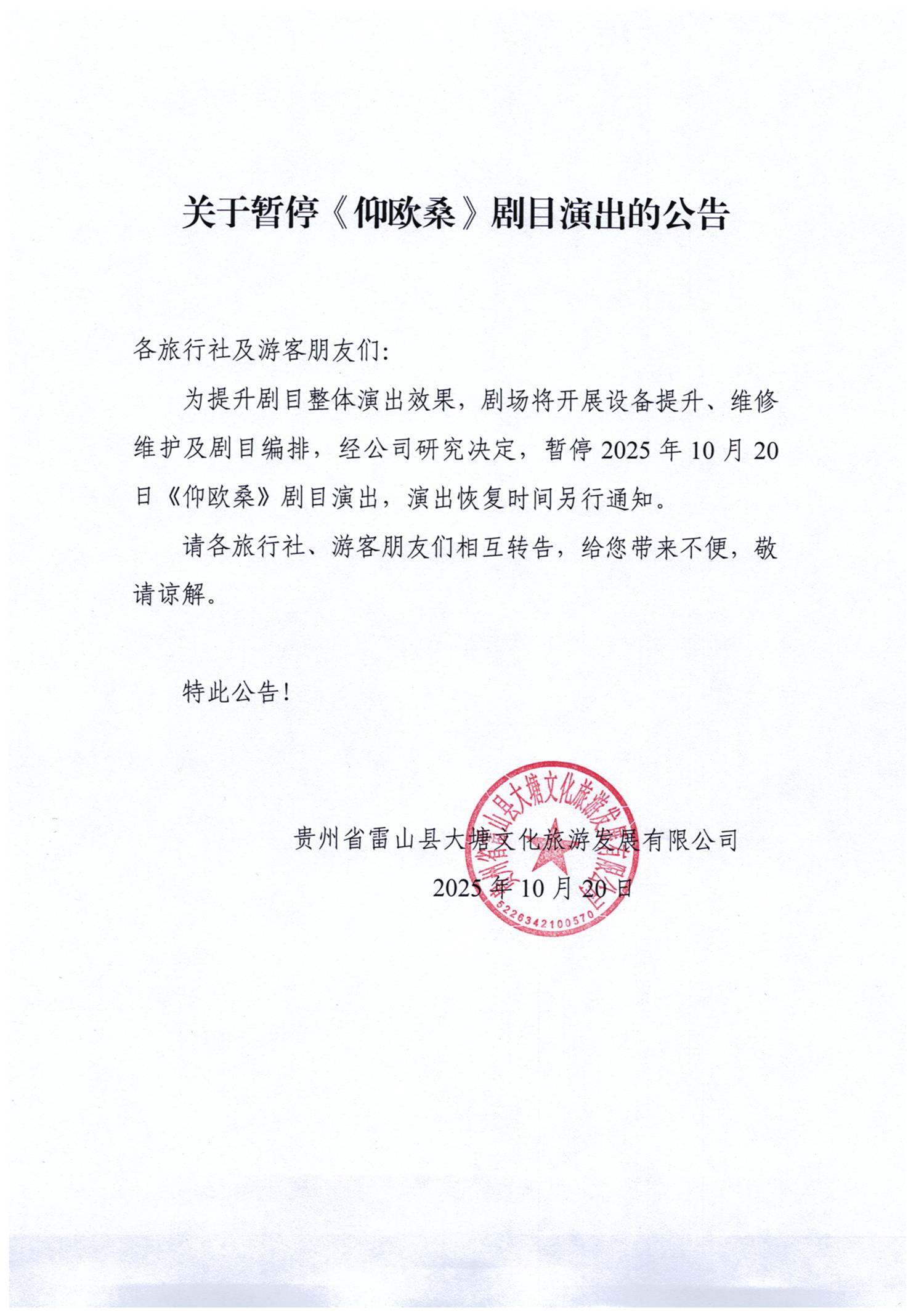 上一篇:关于暂停《仰欧桑》剧目演出的公告