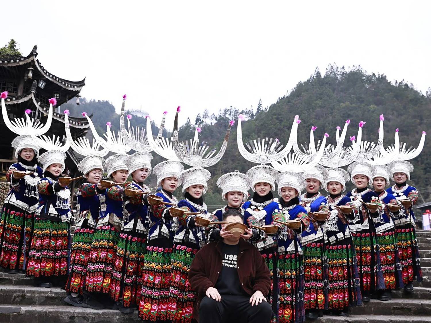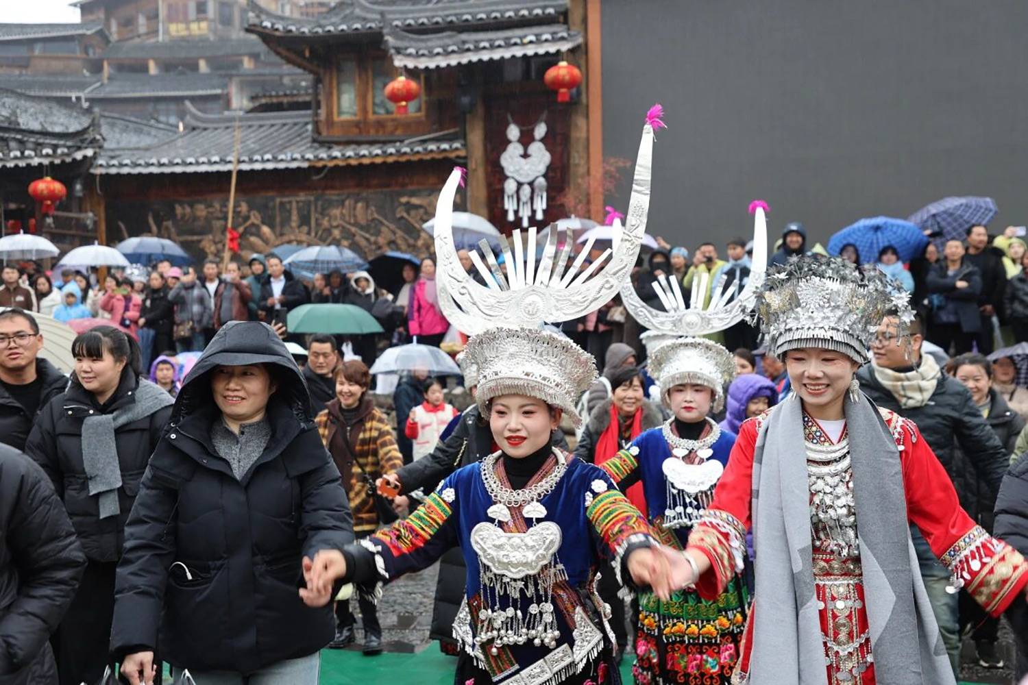 冬季的苗寨从不寂寥,尤其是欢腾热烈的民俗活动,堪称治愈内耗的良药!十二道拦门酒在寨口迎远方宾朋,身着盛装的苗族阿妹递上醇香米酒。